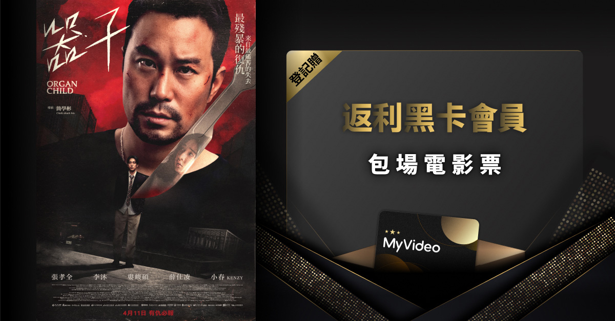 1.活動期間按下「立即登記」,即可獲得《器子》包場電影票,名額共50名(1組2張票)。 2.場次資訊:4/16(三)19:30(實際開演時間另通知)於京站威秀影城(103台北市大同區市民大道一段209號5樓)。 。 3.登記成功未到場者,將取消一個月內所有返利黑卡登記活動資格。 4.先前已登記《器子》包場活動者,請勿重複登記,登記將不予計算。 5.4/11(五) 18:00前公布登記成功名單於MyVideo服務公告(https://www.myvideo.net.tw/info/announce),並同時以簡訊或電子郵件通知回填相關資訊。 6.登記成功者請於收到通知後回填相關資訊,開演當天60分鐘前進行現場取票,請備妥可證明身分之文件,核對身分即可取票,逾時不候,不接受指定座位。 7.如因拒收簡訊或電子郵件而無法聯繫者,視為棄權,不再另外通知。 8.本活動所有贈獎及抽獎活動皆與蘋果公司無關。