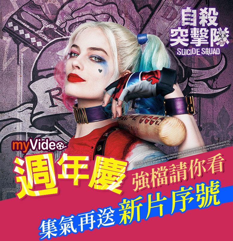 序號12/7統一透過myVideo App推播發送,因移除App或關閉推播通知無法收到《自殺突擊隊》序號恕不補發