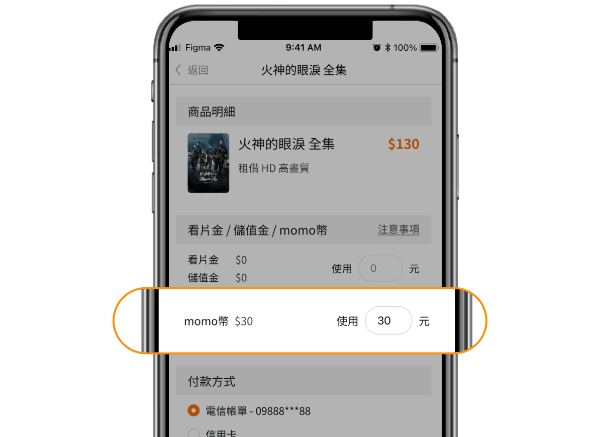 綁定momo帳號,即可於交易時,使用momo幣折抵全額或部分金額(月租與儲值金購買除外)