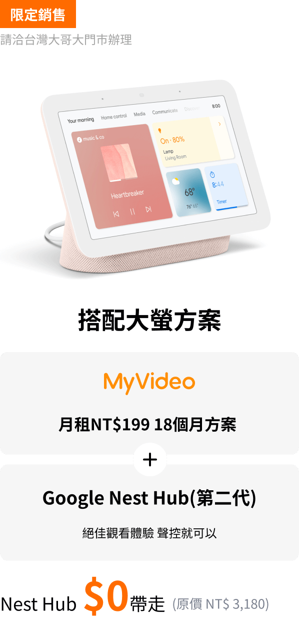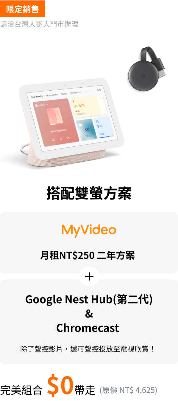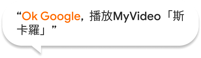 開口說出”Ok Google + 想做的動作 ”,立即透過 MyVideo 在螢幕上播放喜愛的影片